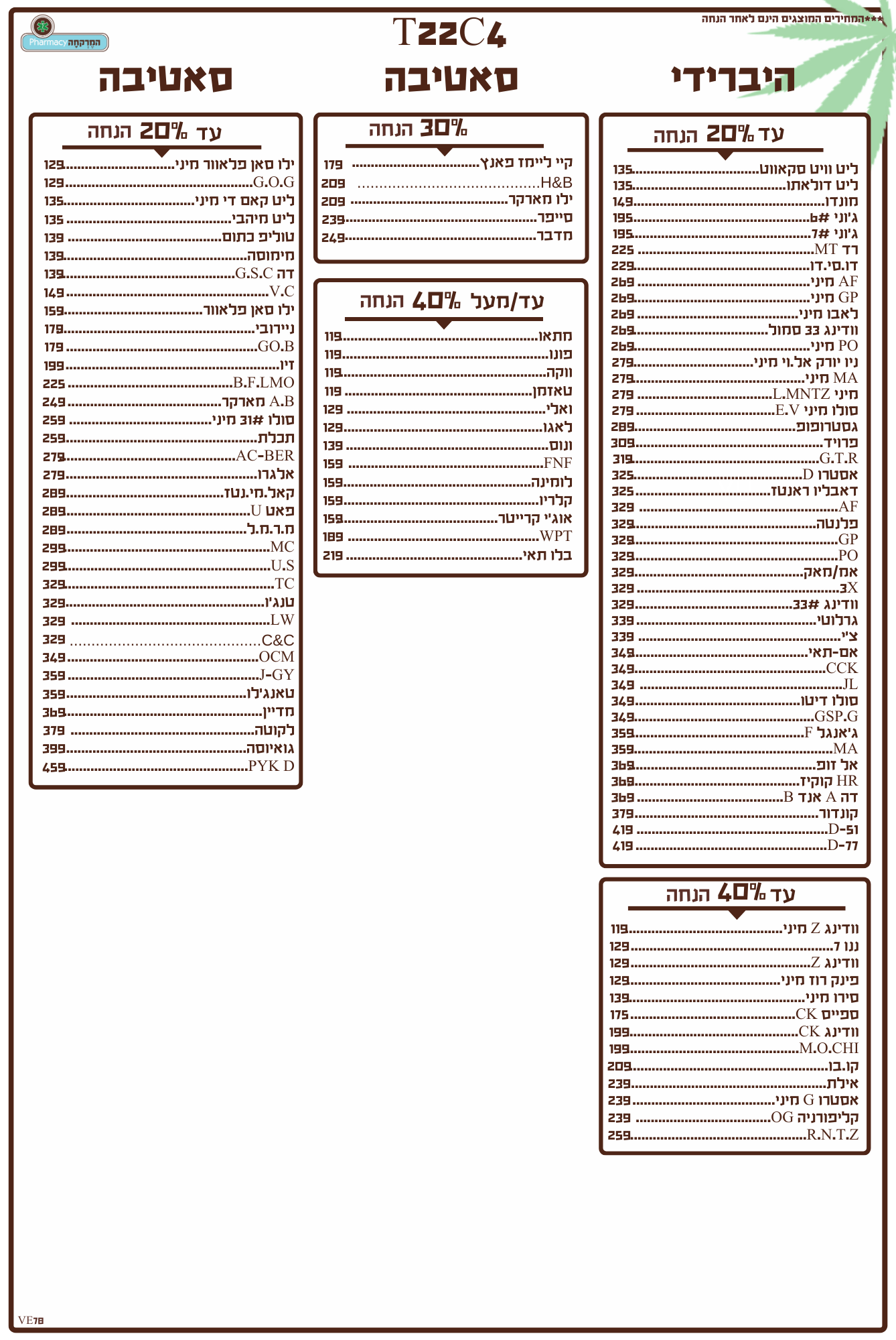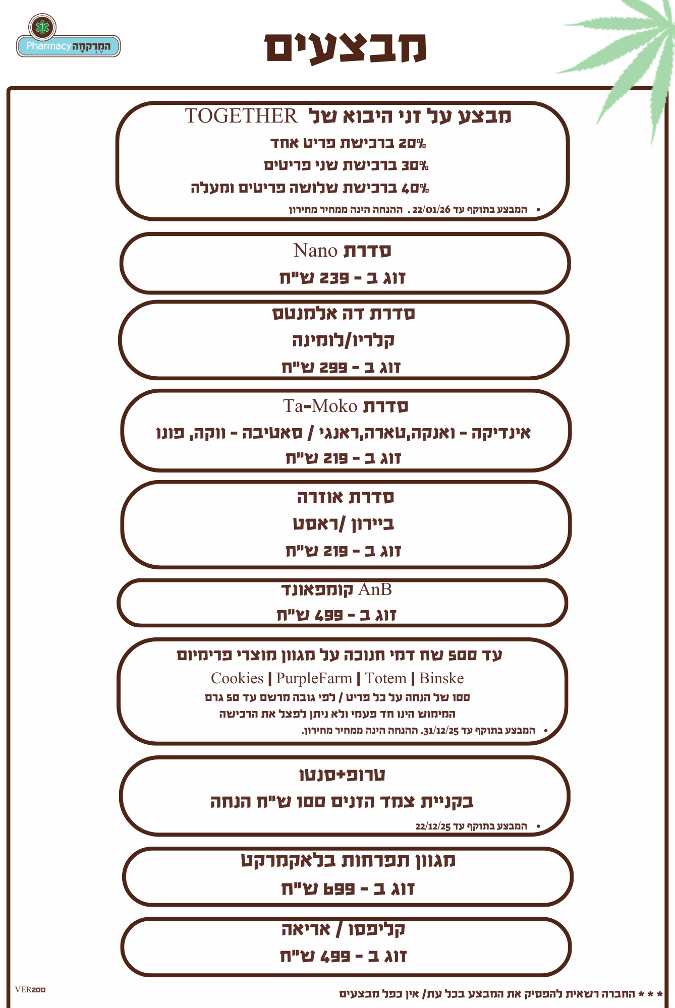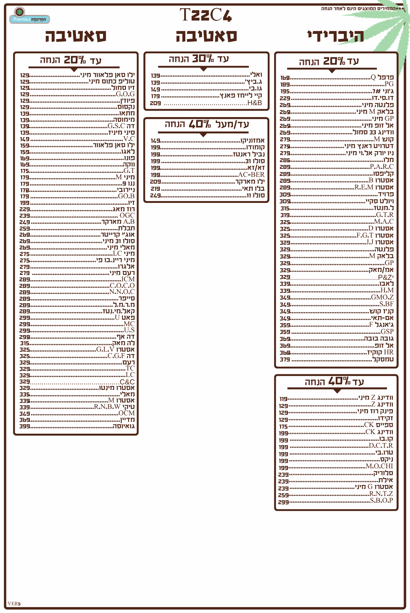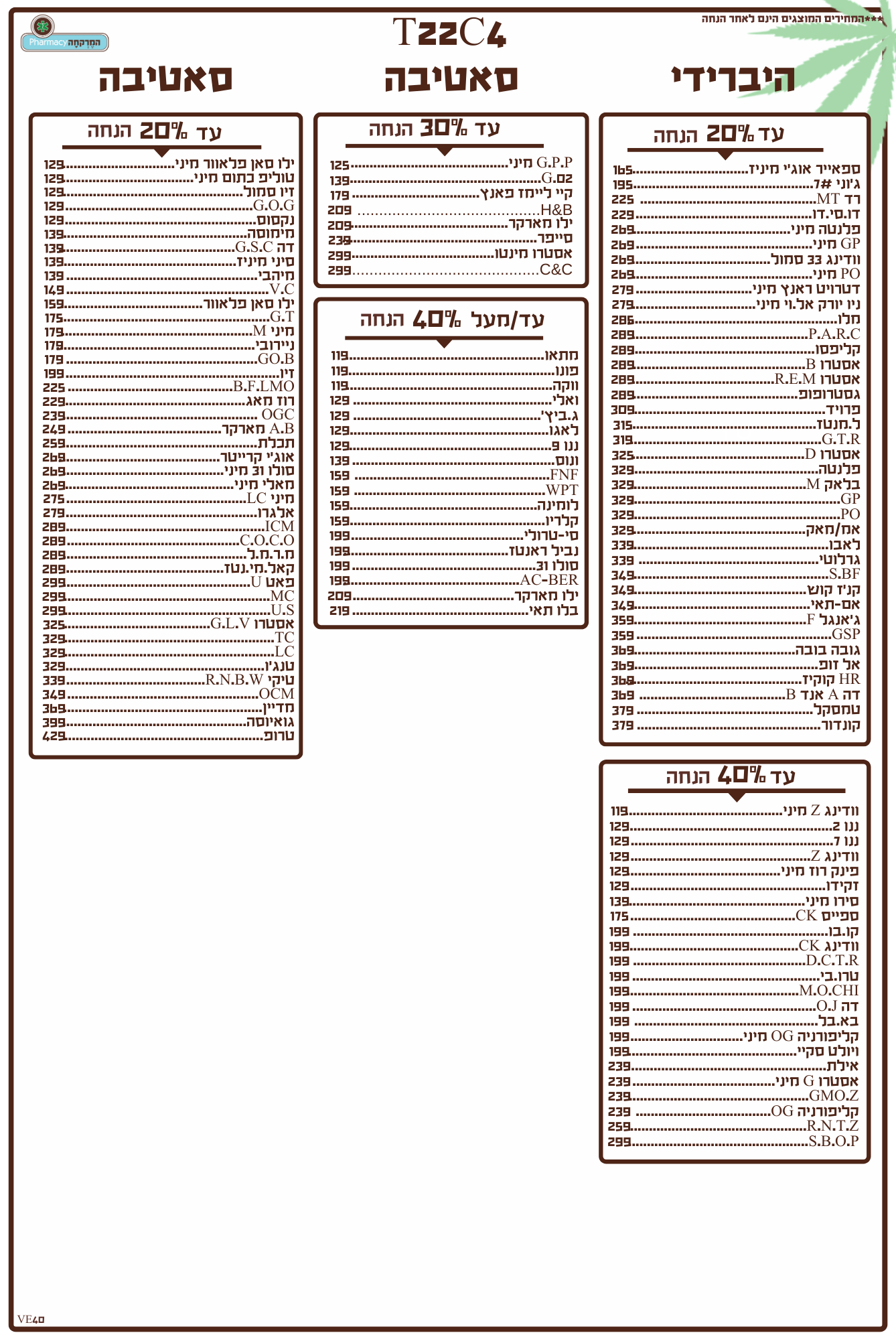 תפרחות סאטיבה / היבריד 22/4 מחיר מיוחד