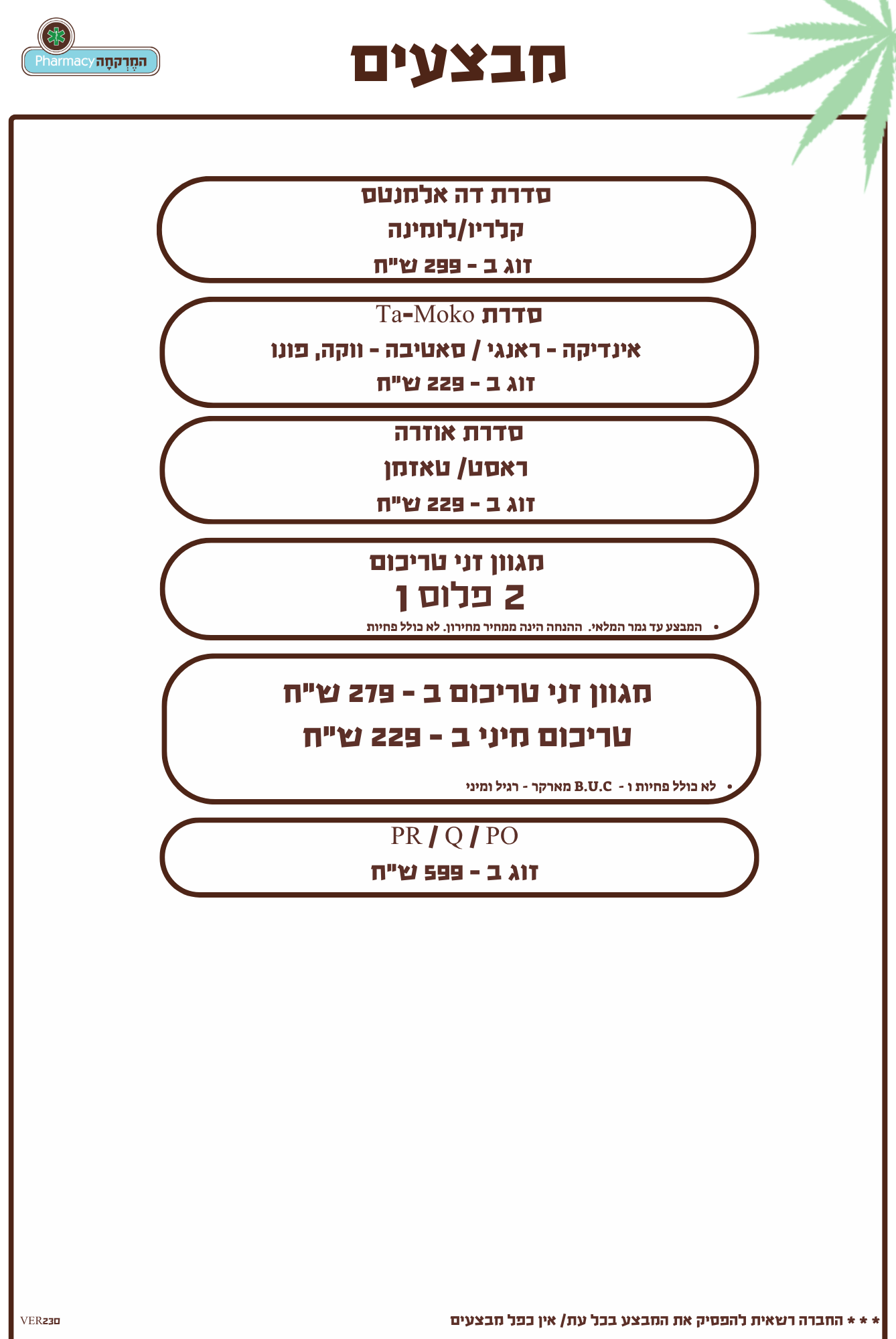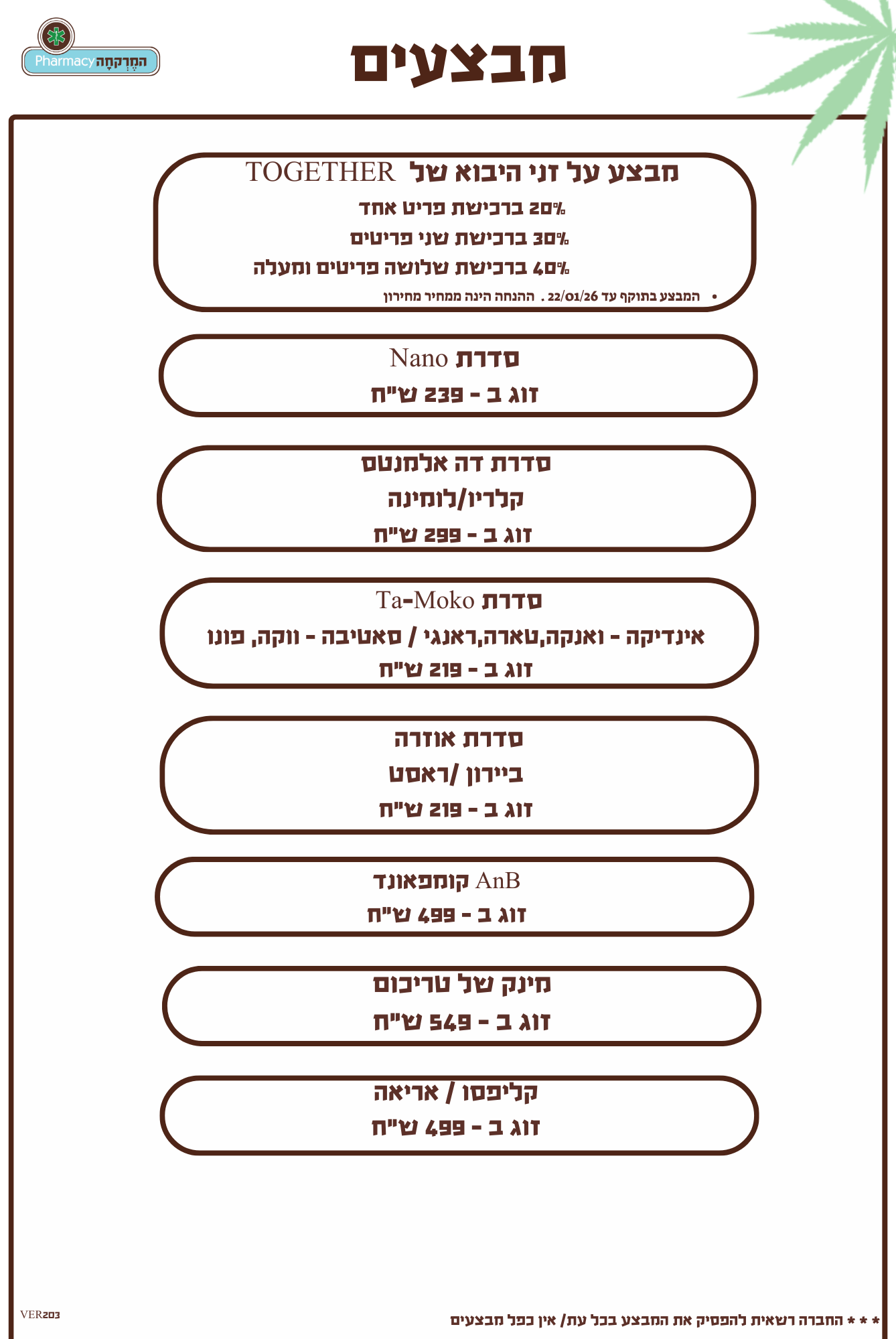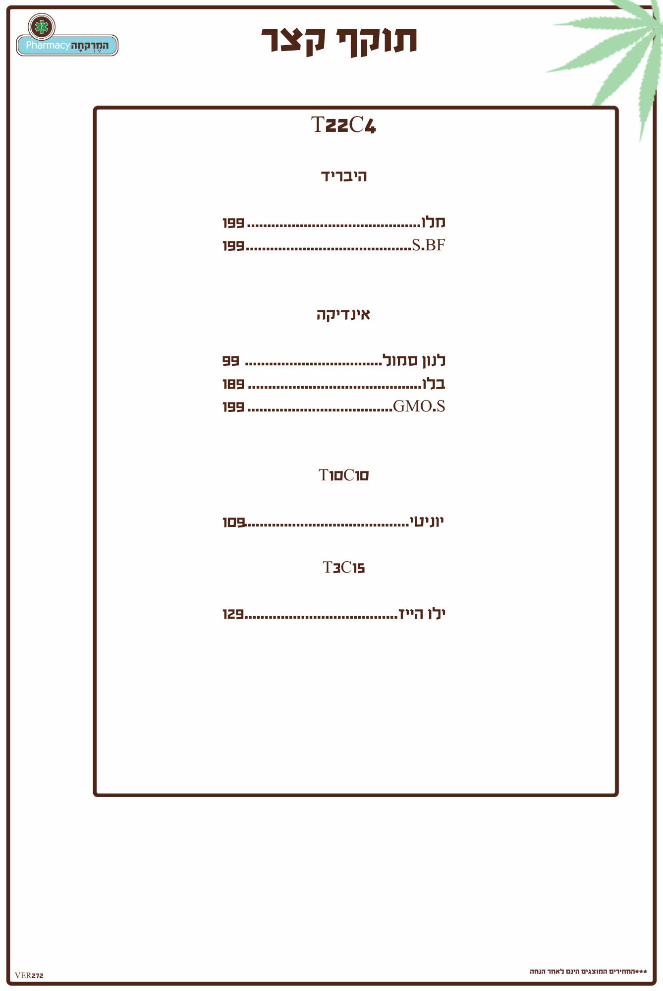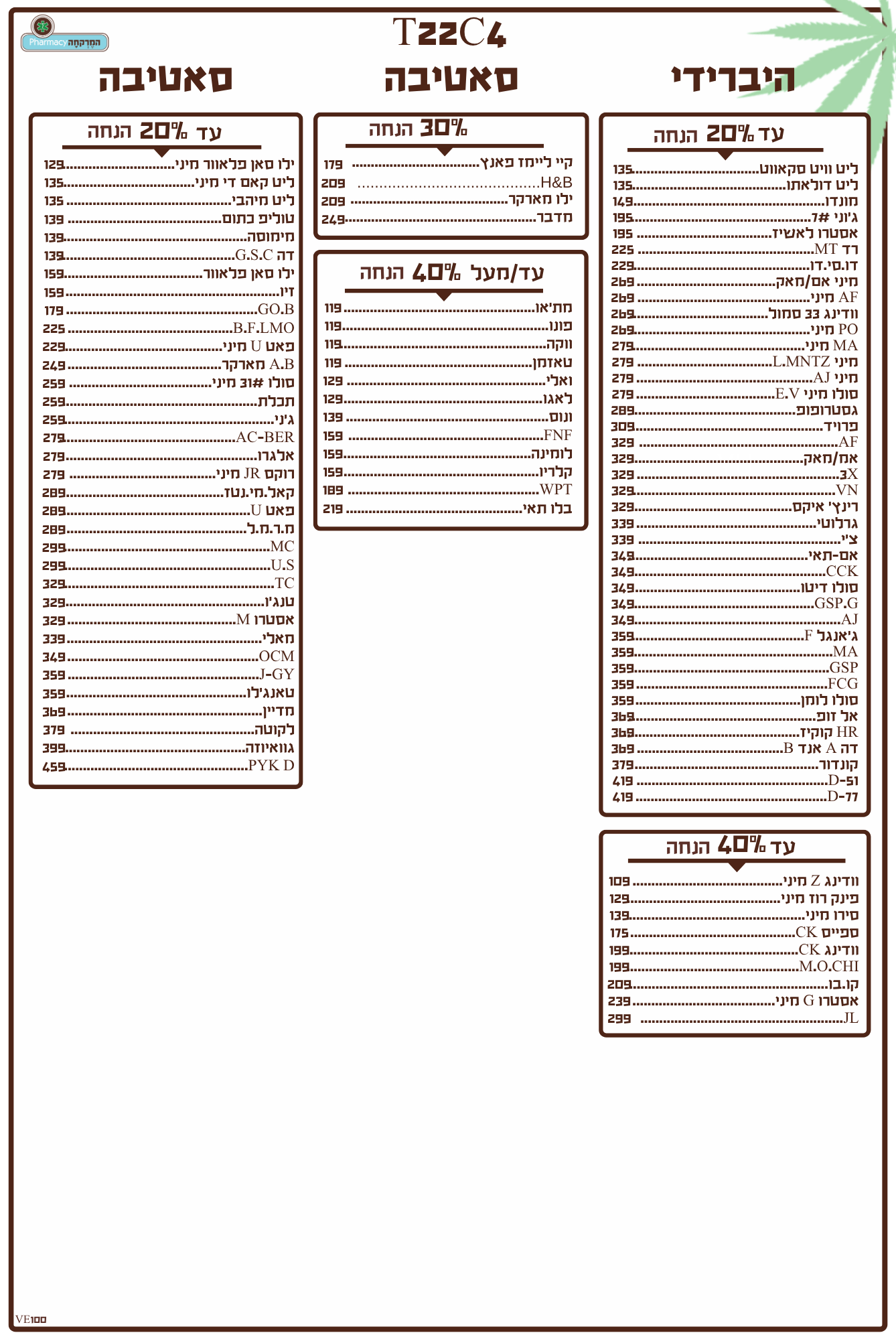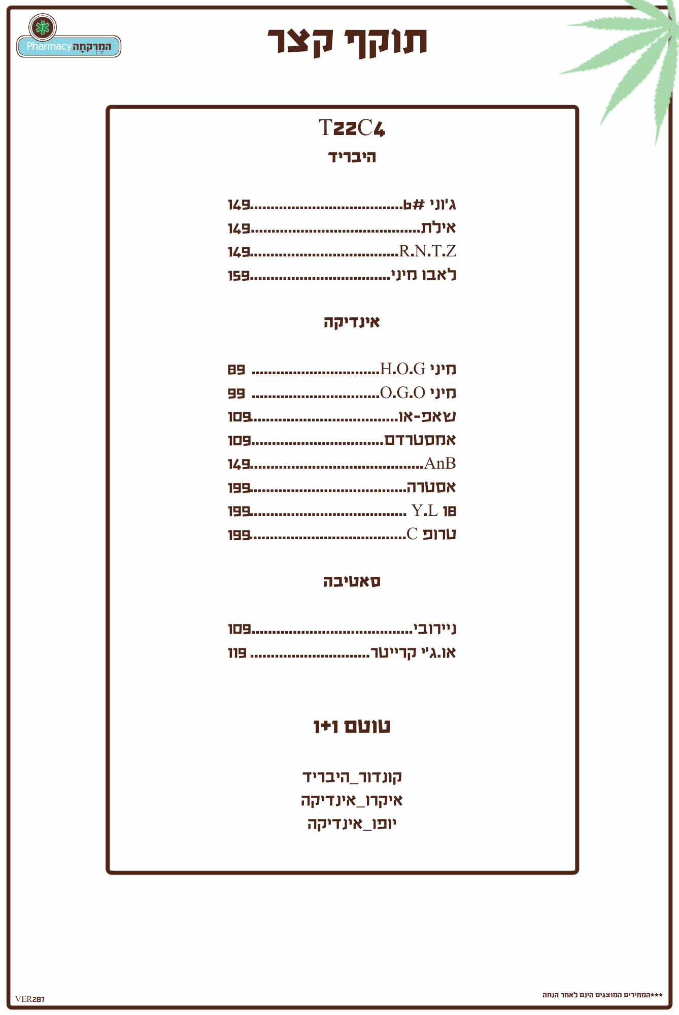 תפרחות סאטיבה / היבריד 22/4 מחיר מיוחד