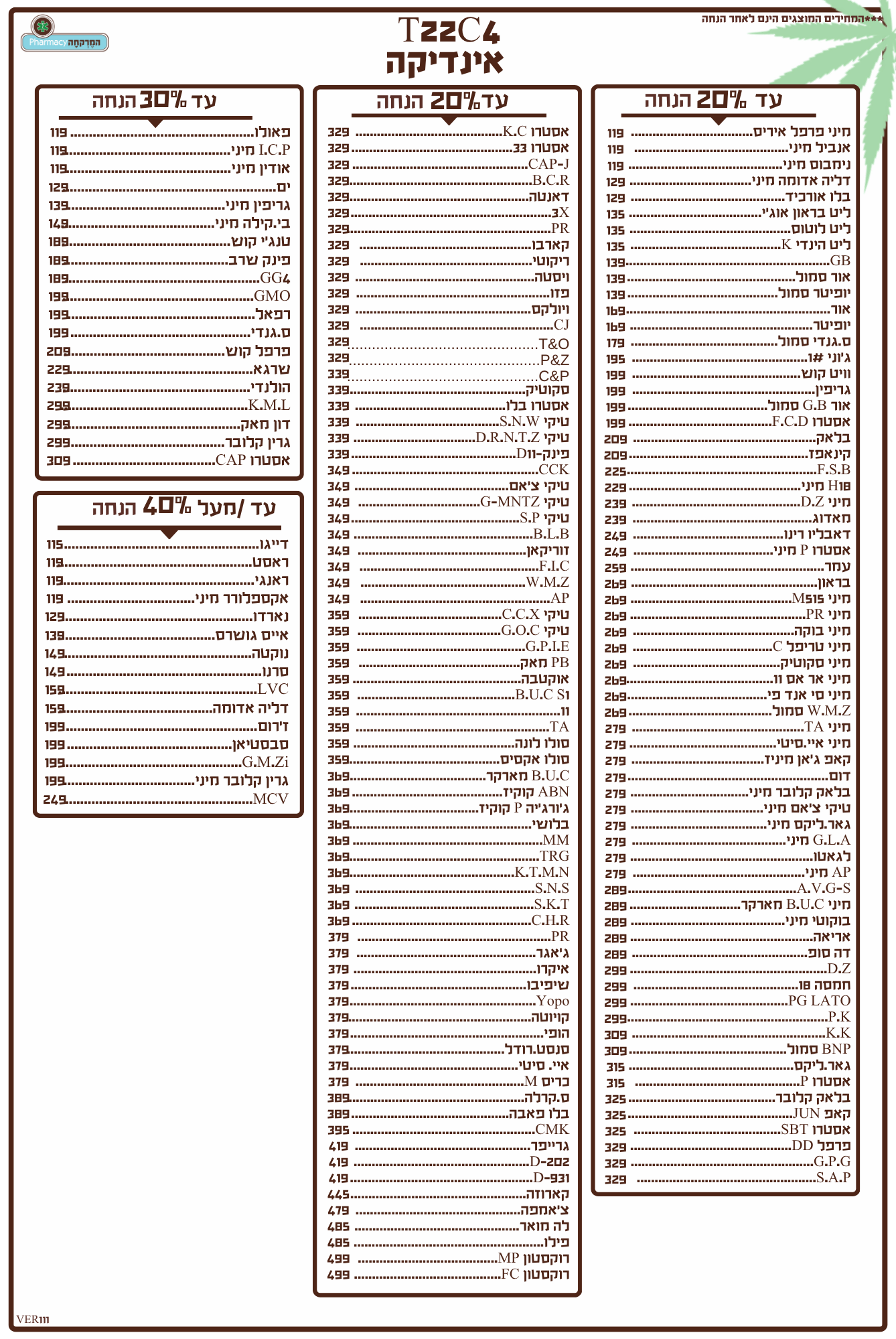 תפרחות אינדיקה 22/4 מחיר מיוחד